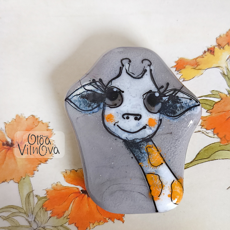 Focal lampwork bead, "Curious Giraffe" series. With bright cheeks, long lashes, and a never-ending smile, she’s ready to peek from your pocket, your necklace, or even sneak into your daydreams.