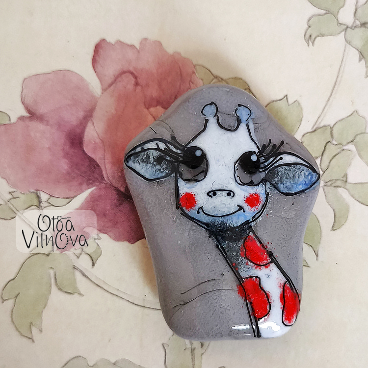 Focal lampwork bead, "Curious Giraffe" series. With bright cheeks, long lashes, and a never-ending smile, she’s ready to peek from your pocket, your necklace, or even sneak into your daydreams.