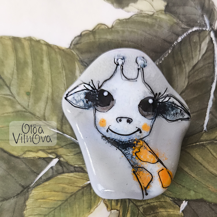 Focal lampwork bead, "Curious Giraffe" series. With bright cheeks, long lashes, and a never-ending smile, she’s ready to peek from your pocket, your necklace, or even sneak into your daydreams.