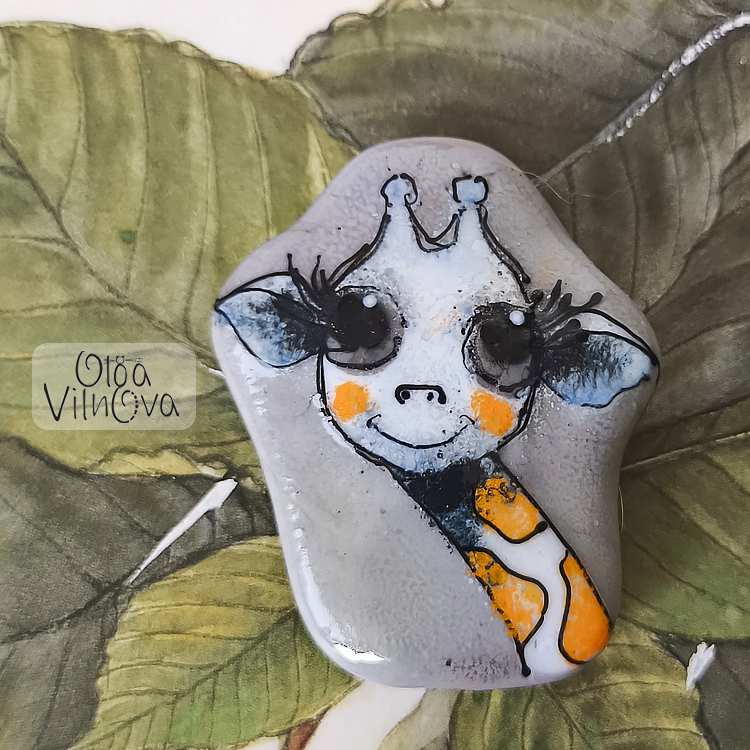 Focal lampwork bead, "Curious Giraffe" series. With bright cheeks, long lashes, and a never-ending smile, she’s ready to peek from your pocket, your necklace, or even sneak into your daydreams.