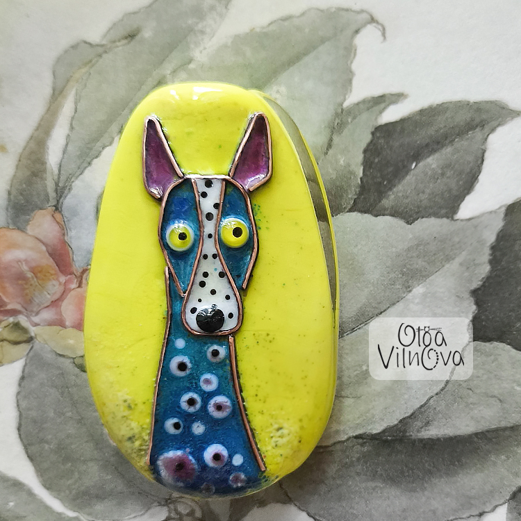 A blue dog with pink spots and a very knowing look. This lampwork bead captures that quiet moment when the day has barely begun, yet the weight of the world is already there - and the dog feels it before anyone says a word.