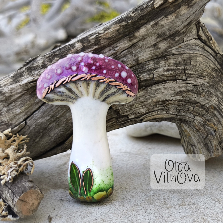 "Fairy Mushroom" focal lampwork bead: a whimsical, hand-crafted glass treasure that seems to have grown straight out of a fairytale forest. Perfect as a pendant, centerpiece for a necklace, or home decoration. Copper wire fused into the glass surface and polished after annealing.