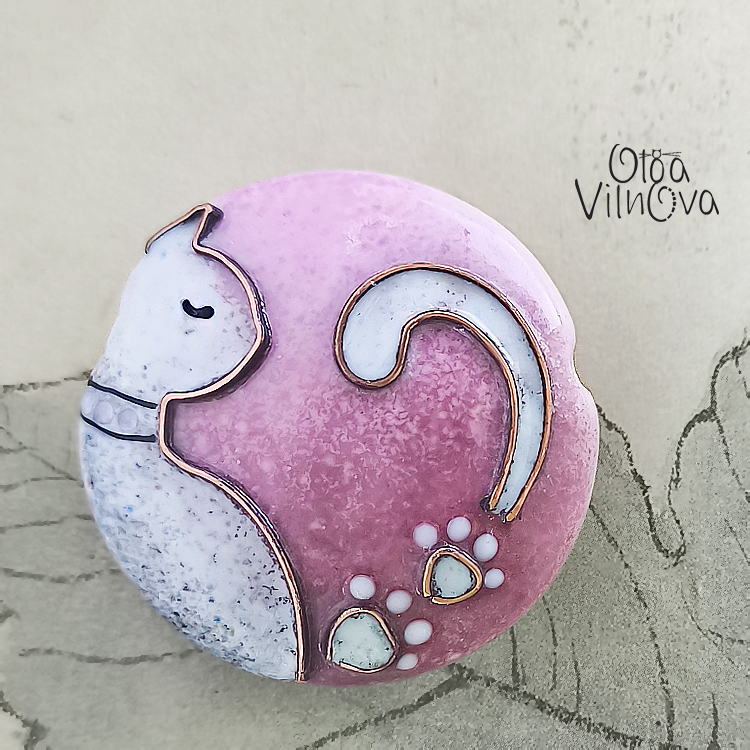 Minimalist lampwork glass bead featuring cat sitting in profile. Subtle curves of the tail and body form a quiet heart shape within a perfect circle. Made using my signature copper wire technique. Horizontal hole, well balanced and never flips.
