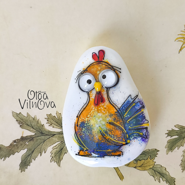Focal bead from the "Goofy rooster" series. Everything is painted with glass in the flame.