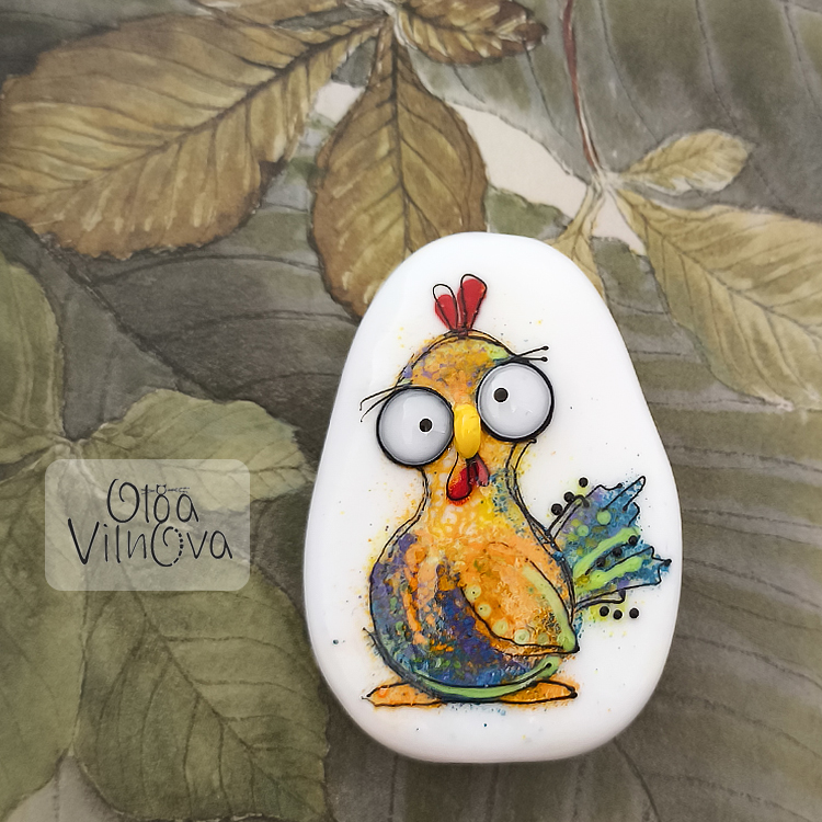 Focal bead from the "Goofy rooster" series. Everything is painted with glass in the flame.