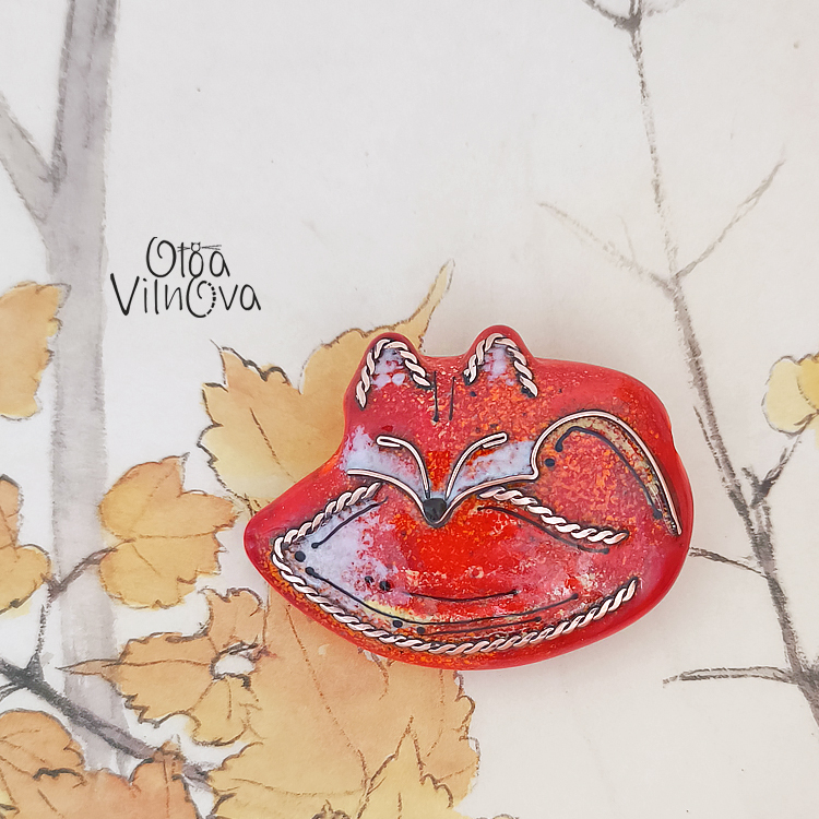 Handcrafted focal lampwork bead from "Sleeping Fox" series. Features flame-painted glass details with fused copper wire accents, polished smooth after annealing. Artist-signed on reverse. Perfectly balanced design prevents flipping when worn. Unique creation.