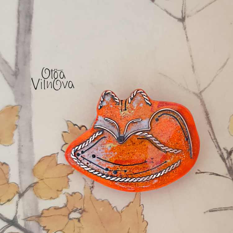 Handcrafted focal lampwork bead from "Sleeping Fox" series. Features flame-painted glass details with fused copper wire accents, polished smooth after annealing. Artist-signed on reverse. Perfectly balanced design prevents flipping when worn. Unique creation.