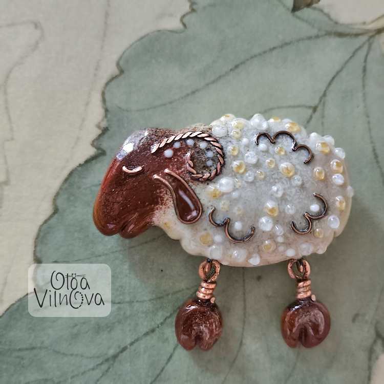 Softly standing sheep - a gentle reminder that balance doesn’t have to be perfect. Lampwork bead with a horizontal hole, fully balanced and never flipping with freely dangling legs, all made in my signature technique.