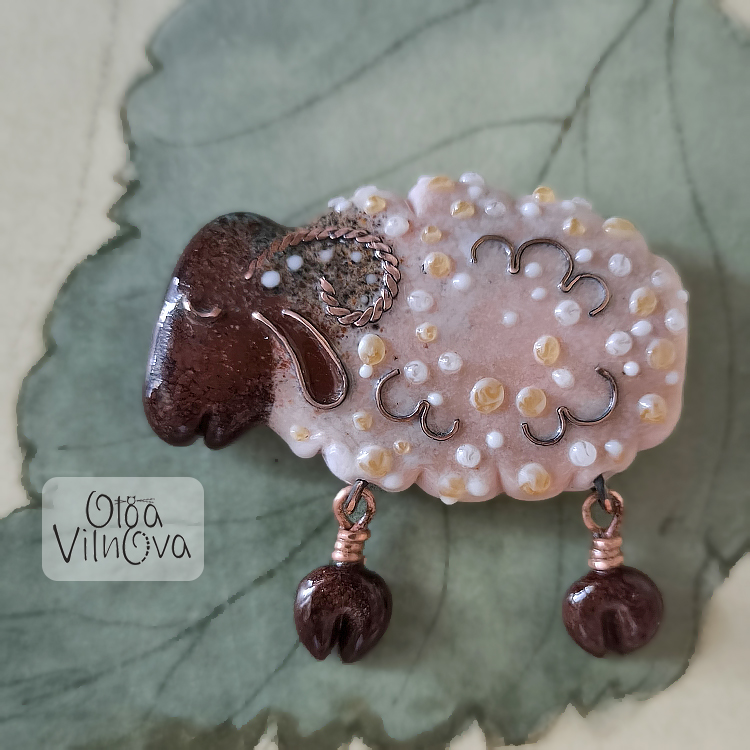 Softly standing sheep - a gentle reminder that balance doesn’t have to be perfect. Lampwork bead with a horizontal hole, fully balanced and never flipping with freely dangling legs, all made in my signature technique.