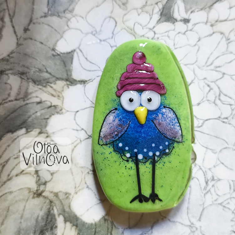 Lampwork glass bead from the Why the hat? Birds series. They just stare at you with those wide, bewildered eye, topped with that unmistakable pink hat that clearly has a story… All drawn freehand in the flame - no molds, no repeats.